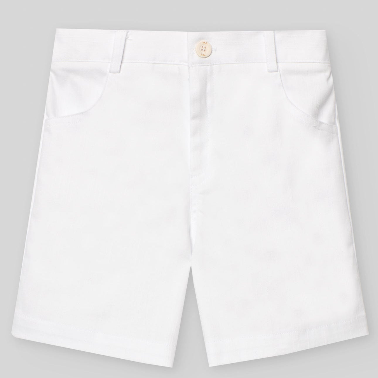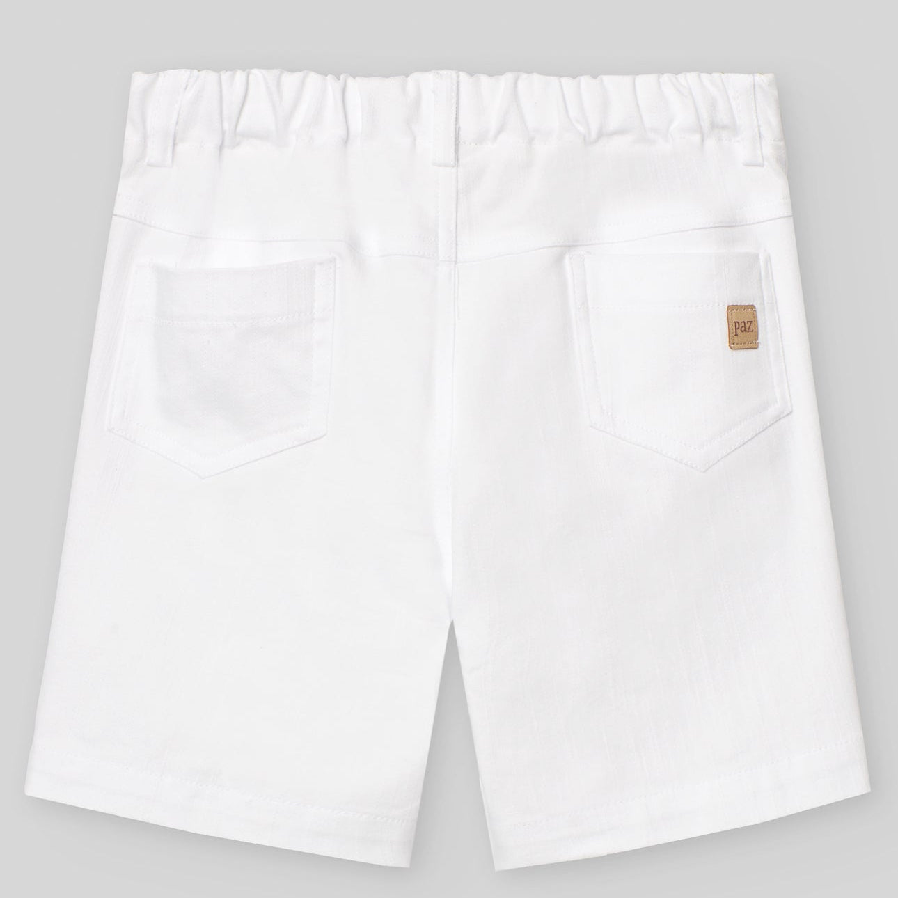 Pantalón corto con bolsillos en la parte delantera y trasera. Confeccionado en loneta, tiene goma ajustable en cintura para mayor confort y cremallera con botón de madera.