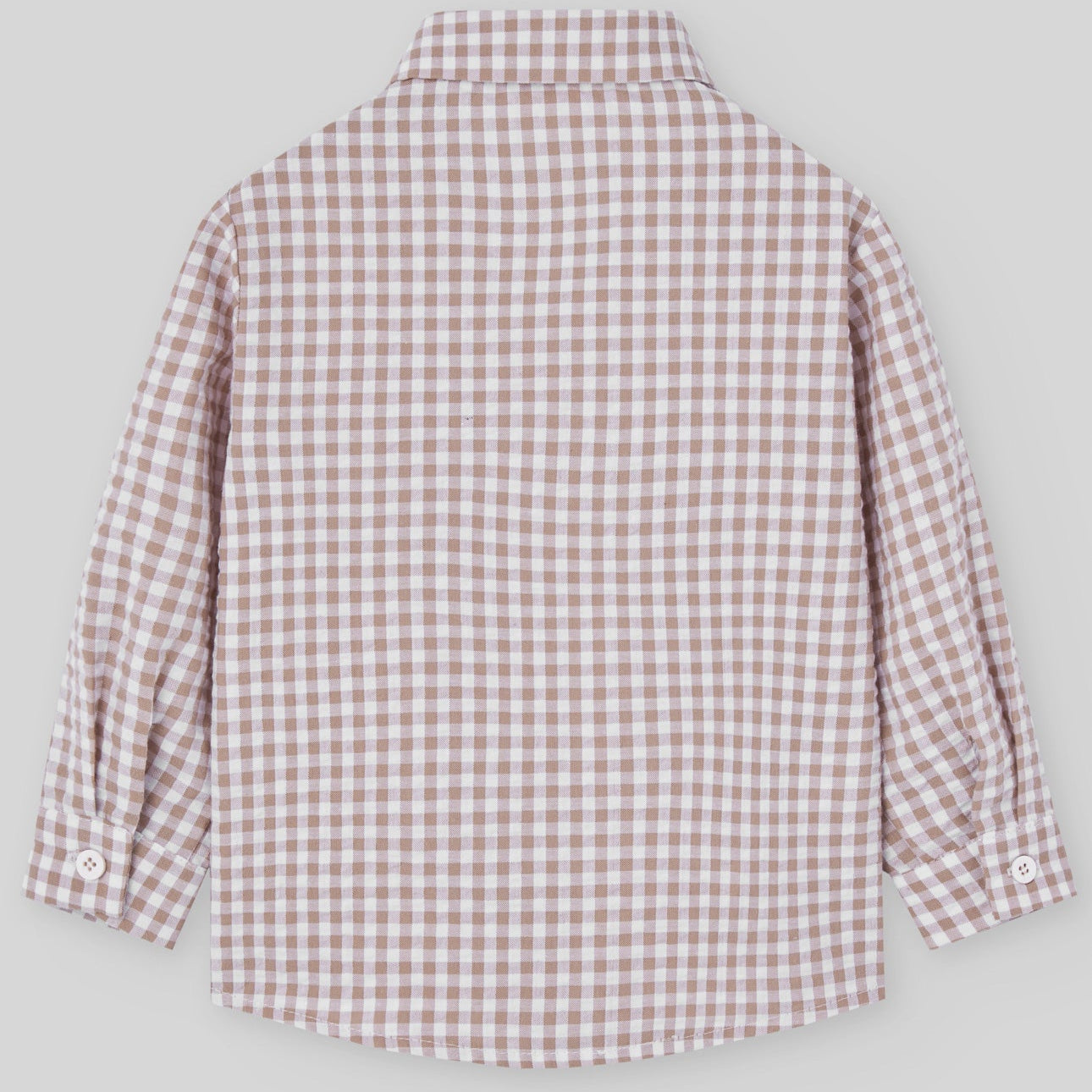 Camisa de cuadros para bebé y niño confeccionada en tejido suave. Cuello clásico y tapeta con botones en el delantero. Manga larga con puño. Prenda abrigada de inspiración tradicional en la colección SETITAS.