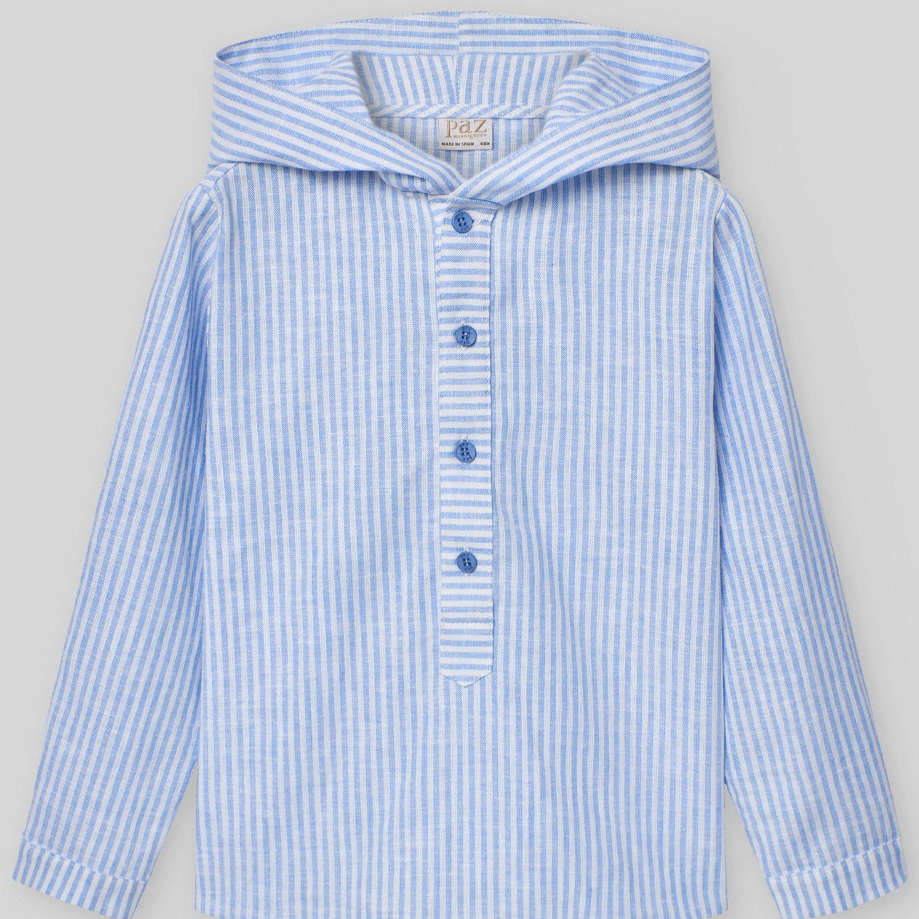 Camisa de lino para niño, con cuello capucha Botones a tono. Ideal para combinar con sus looks o para eventos especiales.
