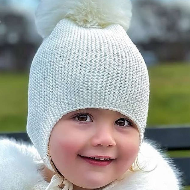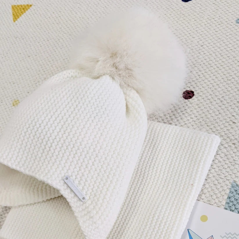 Gorro de punto cálido con pompón superior. Su color vibrante y diseño sencillo lo convierten en una prenda versátil de la colección ACEBO.