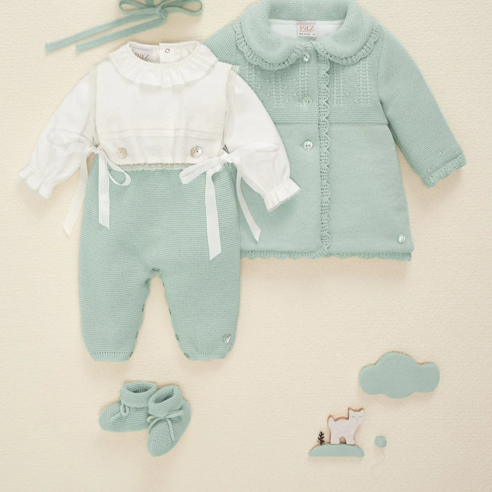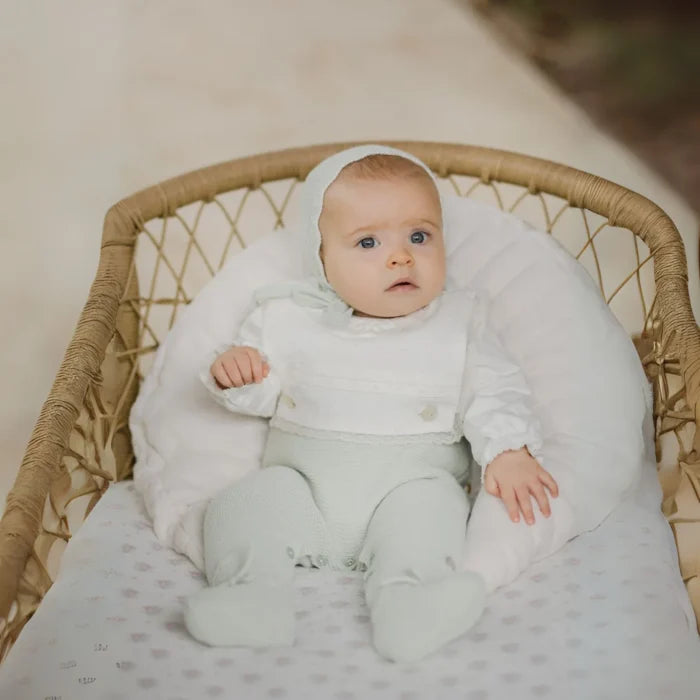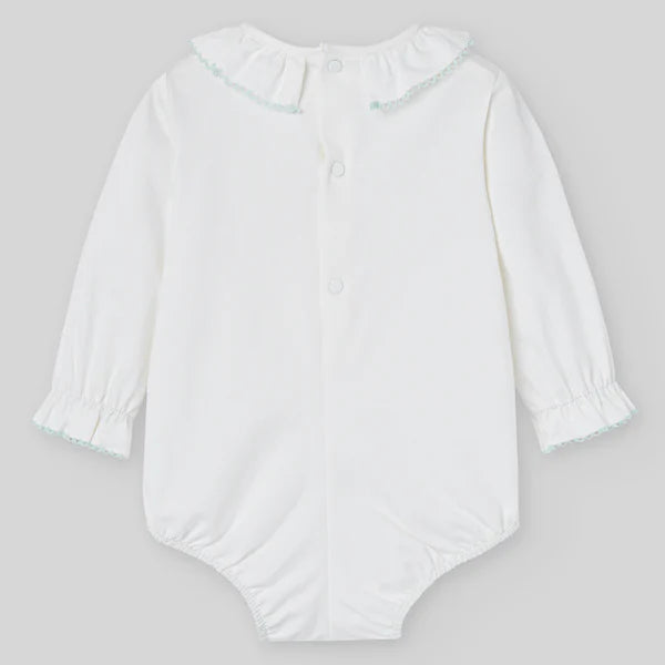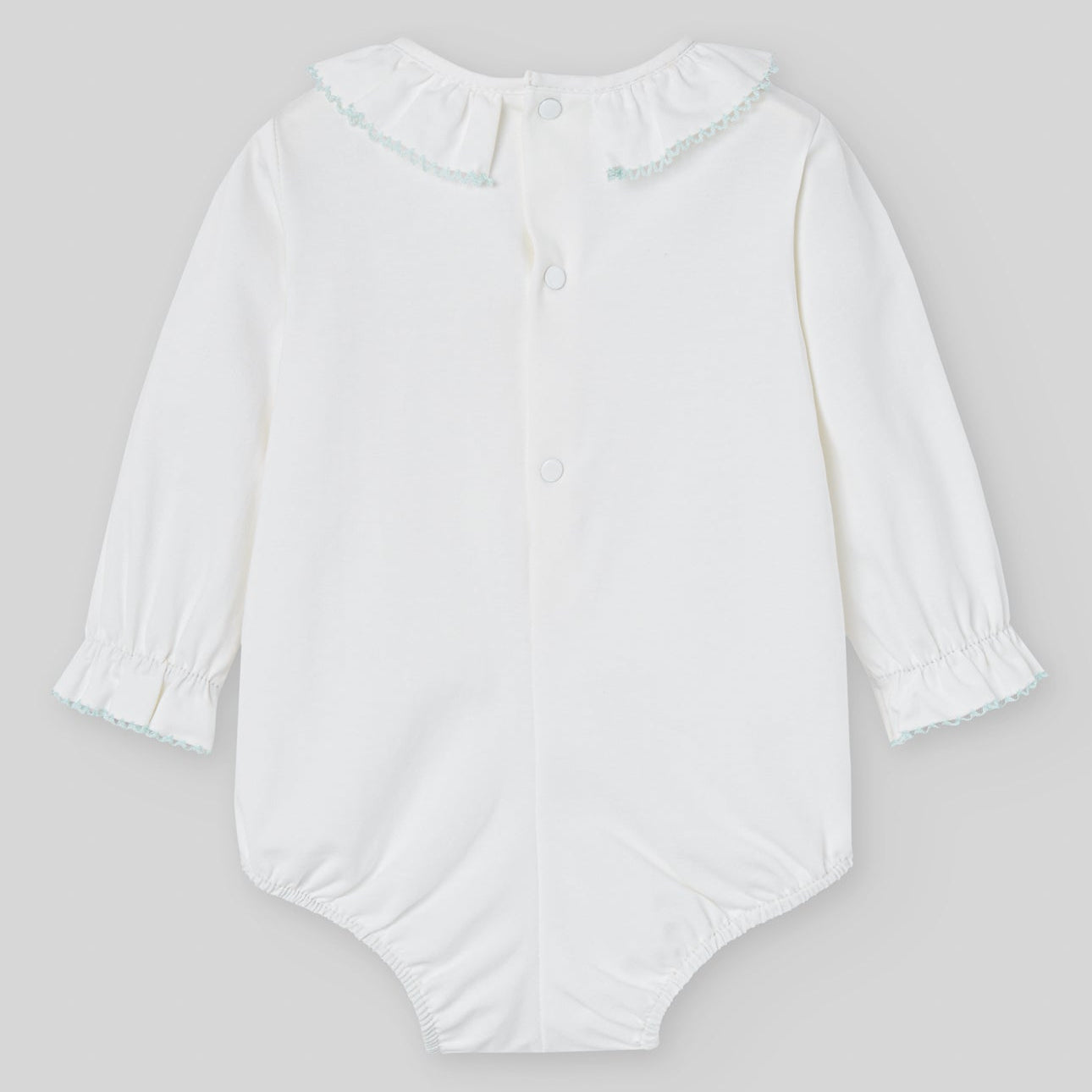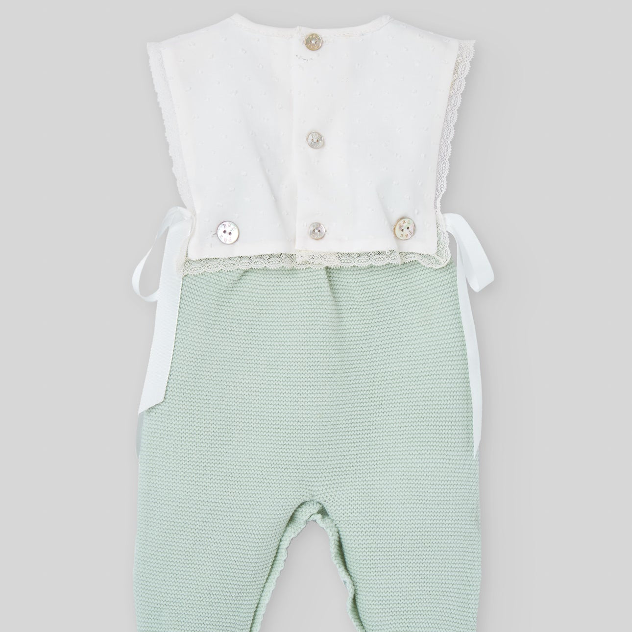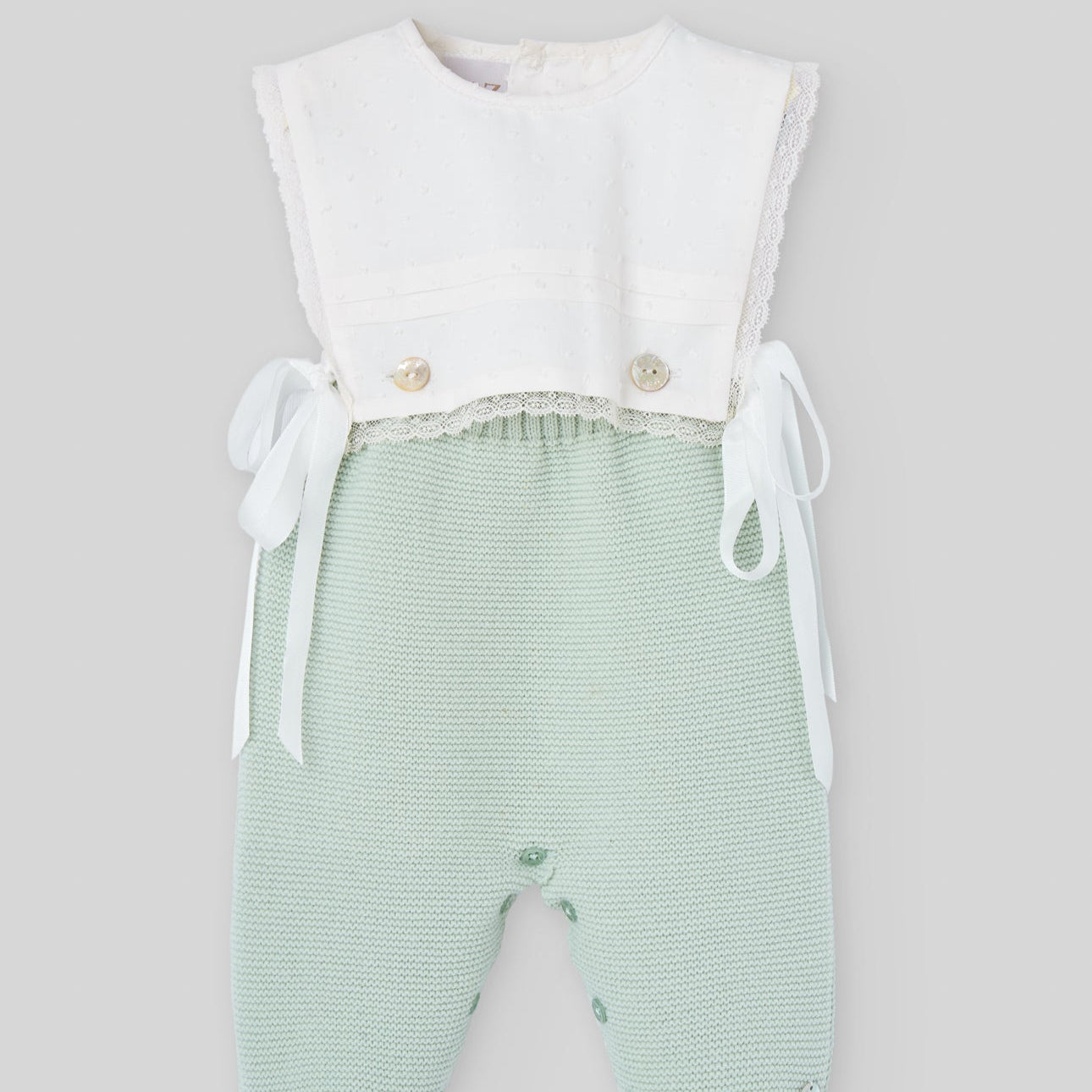 Pelele verde lana con bodi CRUDO -VERDE PALO de punto de jersey de manga larga con cuello dentado. De estilo clásico y delicado, incorpora botones en la espalda y entrepierna para un cambio cómodo y rápido.