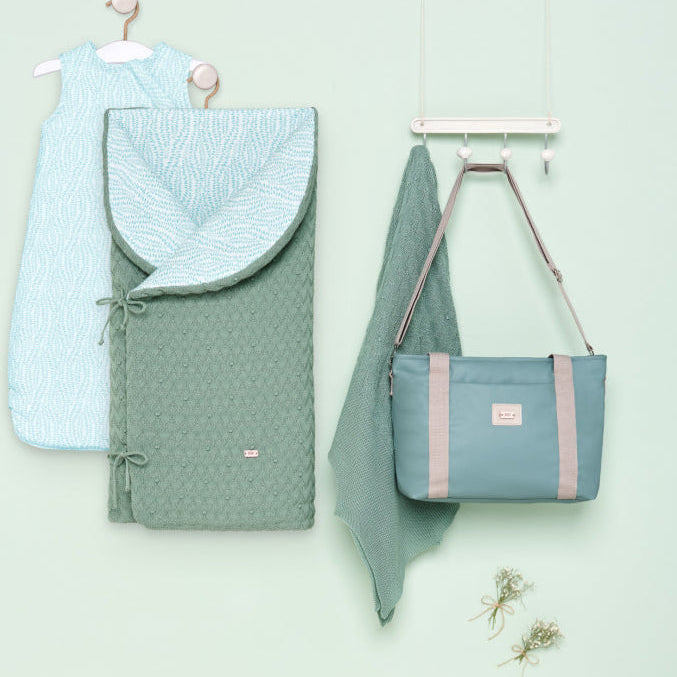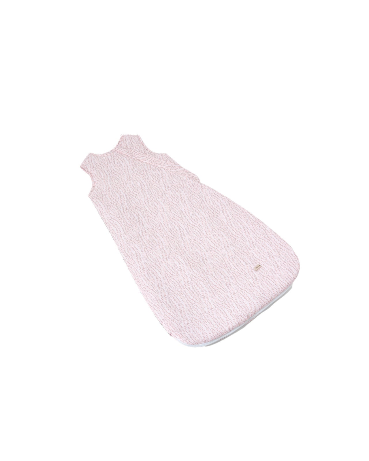 Saco para acostar al bebé con tirantes y cómoda apertura con cremallera en diagonal, fabricado en tejido estampado vegetal combinado con interior de jersey.