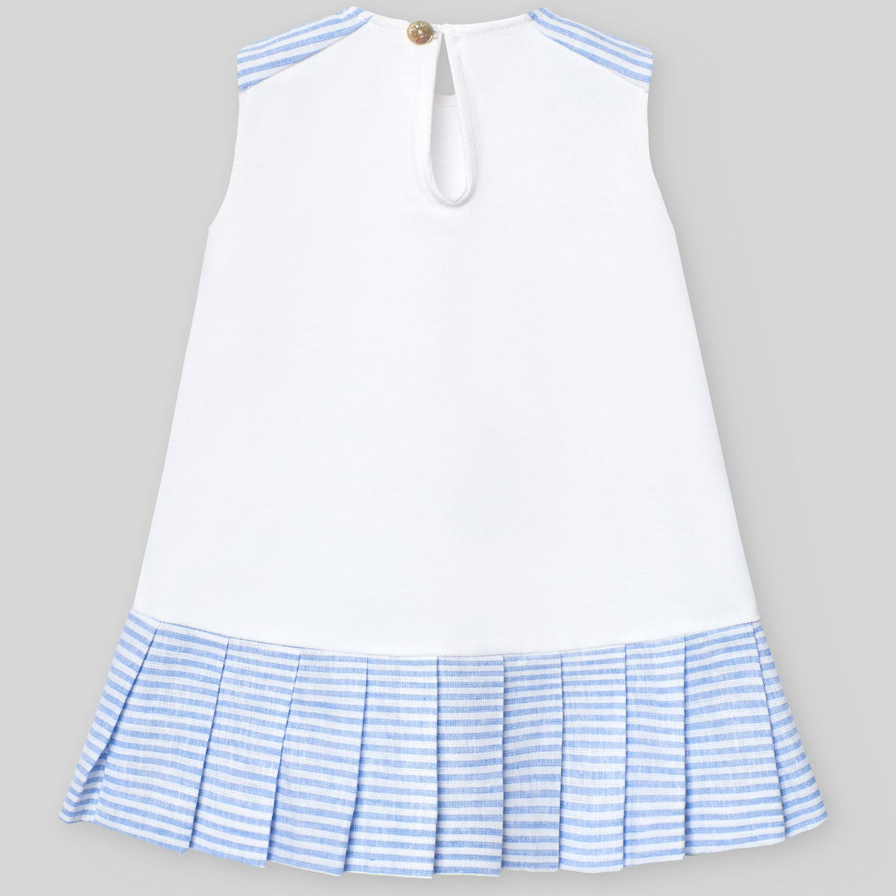 VESTIDO COMBINADO PLISADO RAYAS AZUL LINO “DORNA” NIÑA DE 2-6 AÑOS