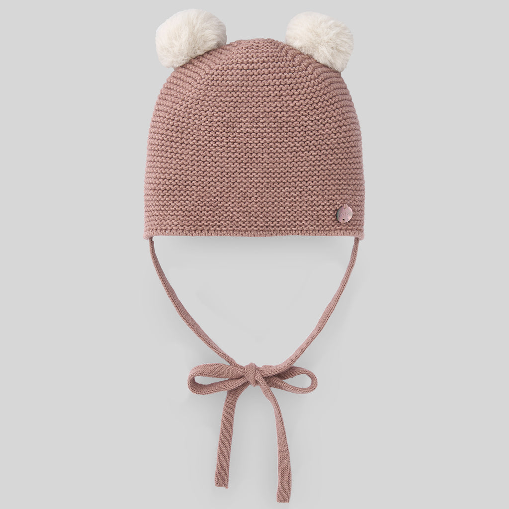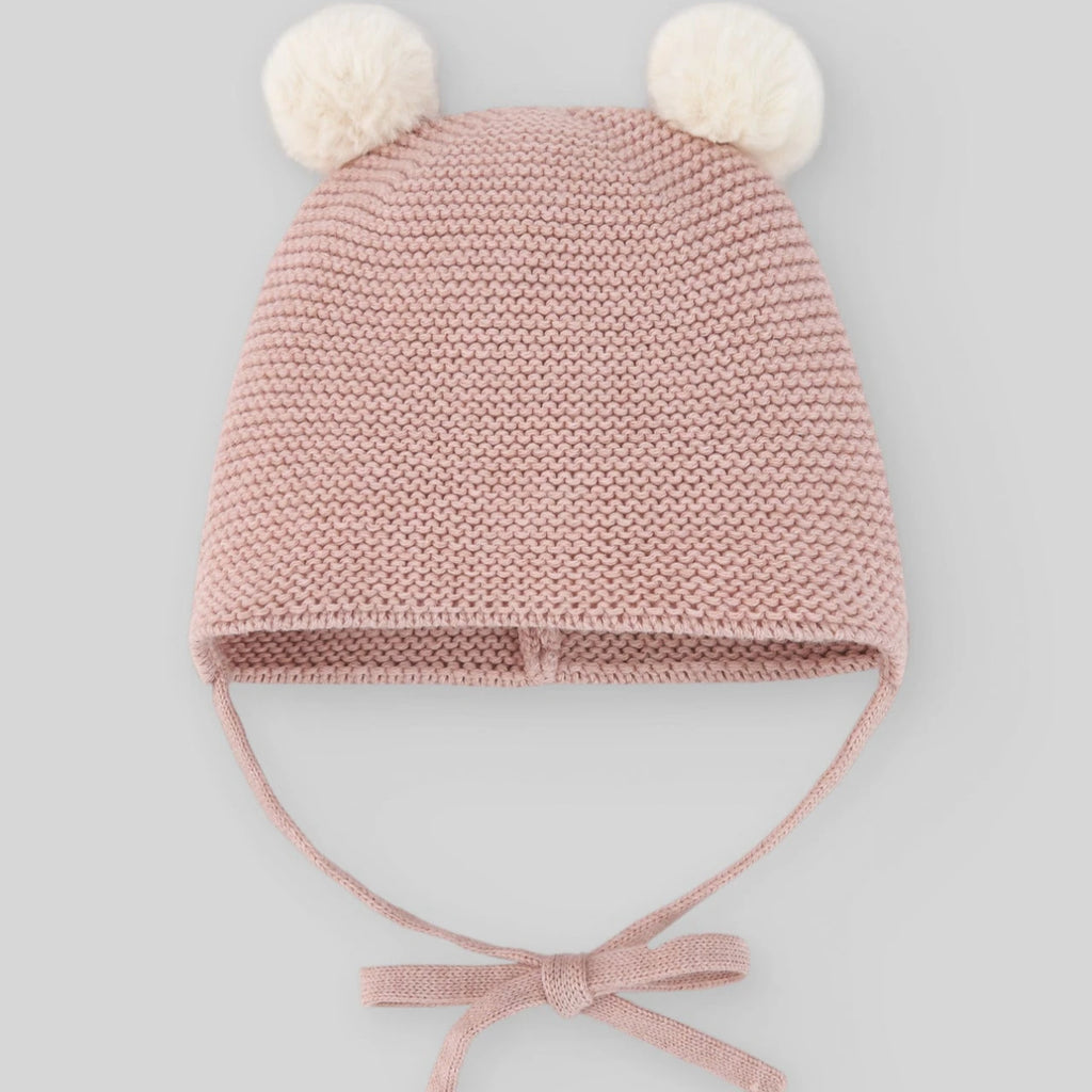 GORRO PUNTO CON POMPONES ESENCIAL ROSA BEBE NIÑA