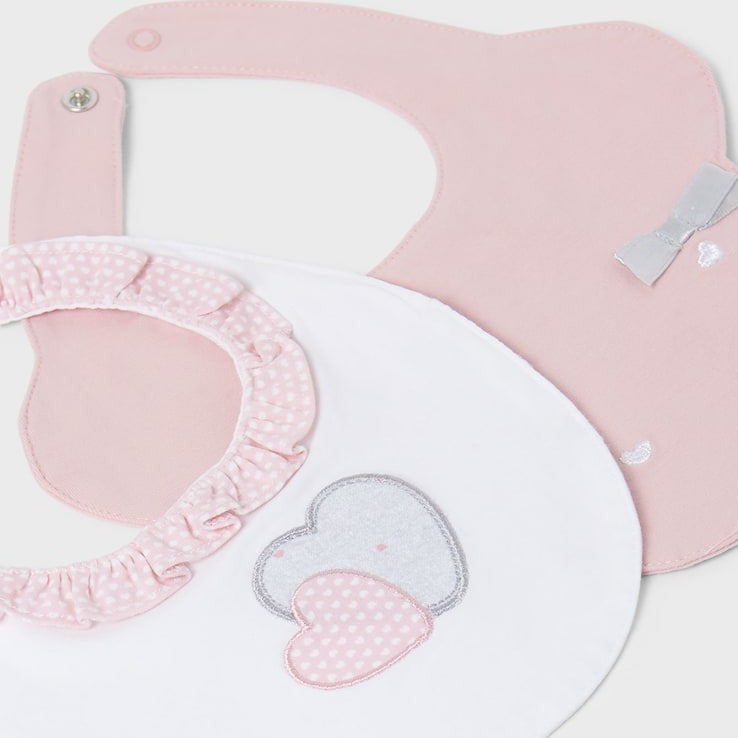 Set de dos baberos para bebé con originales diseños, que serán de gran utilidad para el cuidado y la alimentación de tu pequeño/a. Cierre con un único botón. Diseño con delicados motivos infantiles. Este artículo se presenta en una caja de la línea Newborn ideal para regalar en ocasiones especiales. Este modelo está disponible en talla 0 o primera puesta.